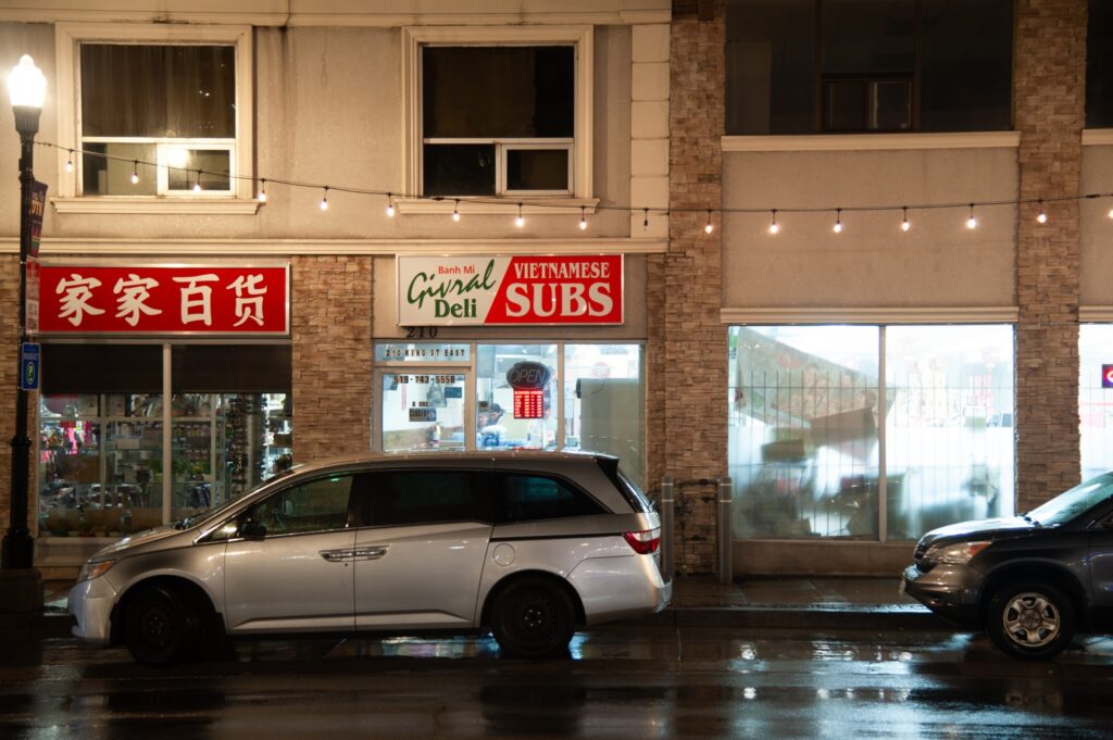 The Banh Mi Givral Deli serves delicious sandwiches packed with BBQ pork, sliced cucumber, pickled carrots, and savoury sauces. You can find sandwiches, steamed buns and spring rolls—all for under $6.