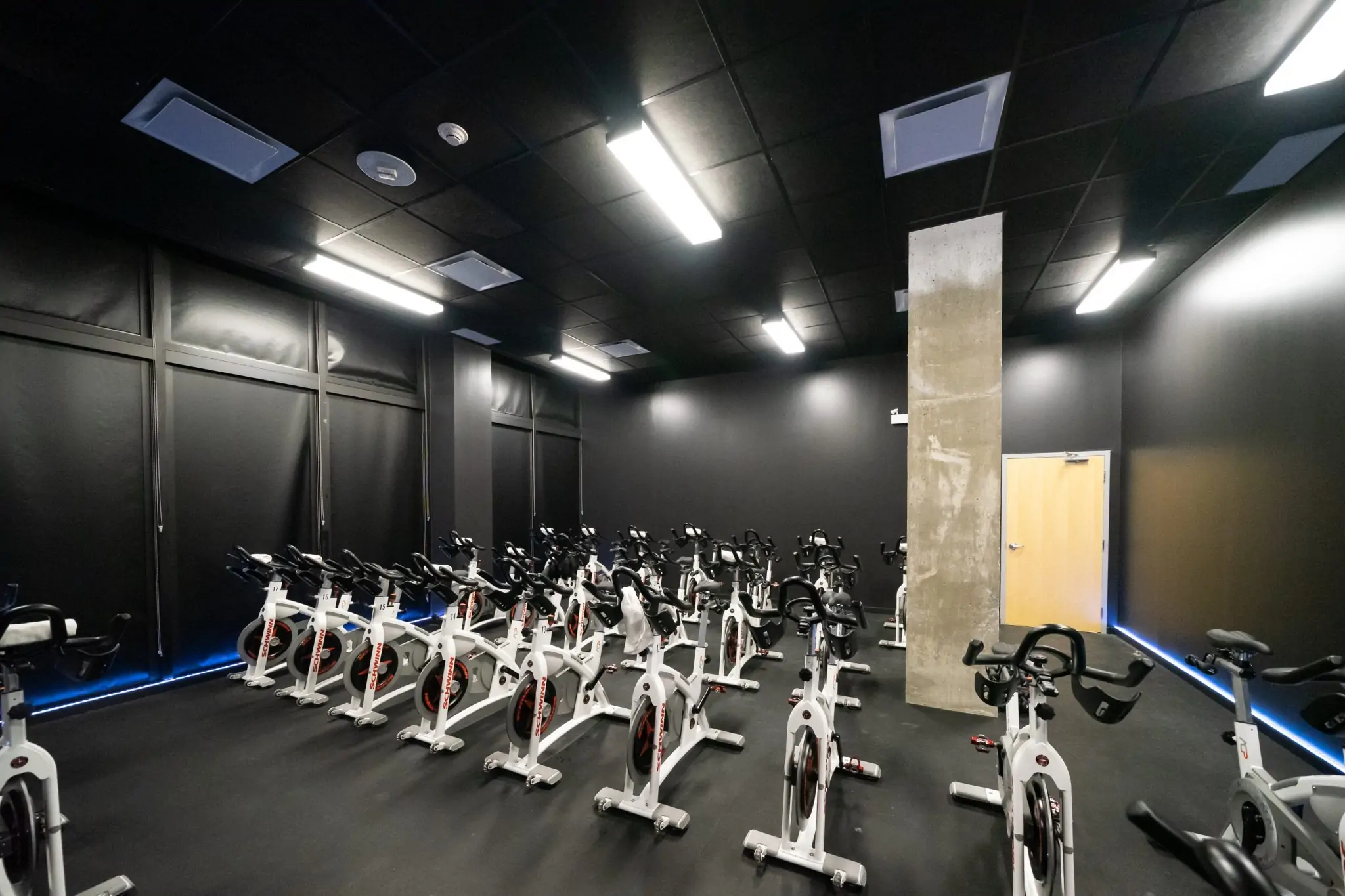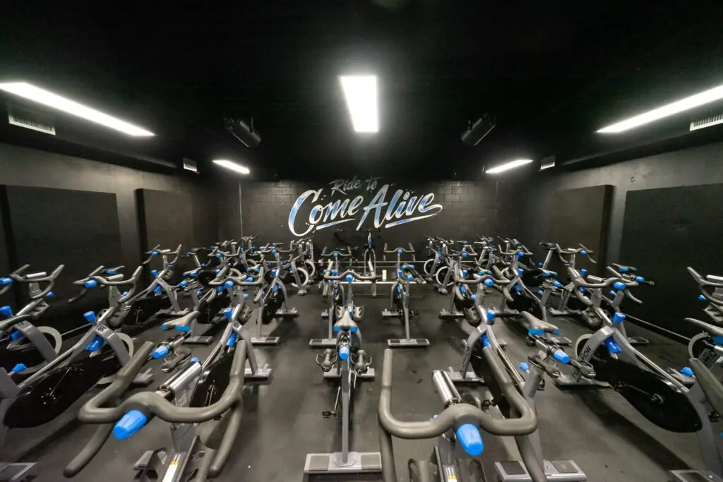 The spin studio is painted black with low light, achieving the sense of anonymity I was looking for. The lighting changes throughout the class, so sometimes you’re spinning in complete darkness.